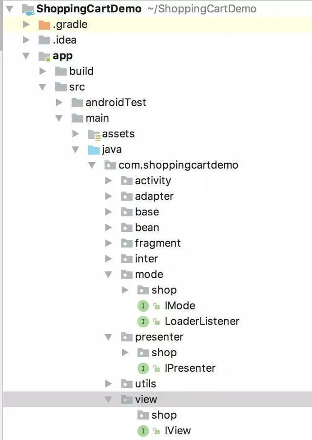 其实就是对Iview实现,然后在不同的实现方法里面处理view,所以在view的实现类里面不会出现处理业务的代码,只会跟view相关的代码。 项目结构图