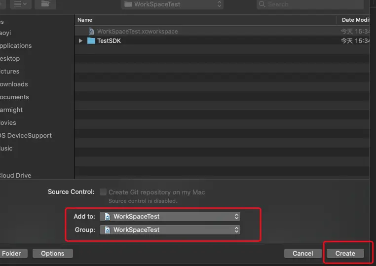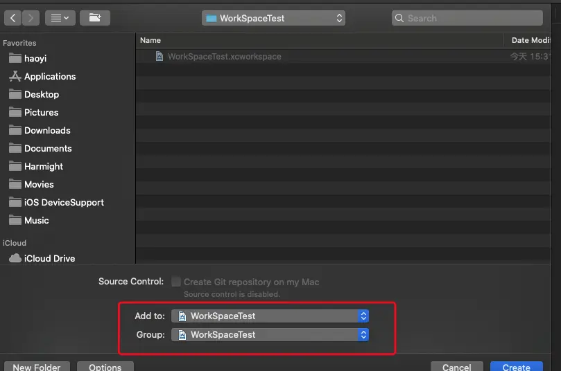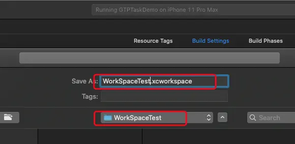 Xcode -> File -> New -> WorkSpace, 保存到指定目录