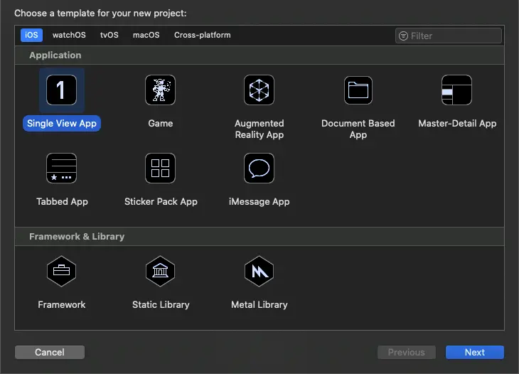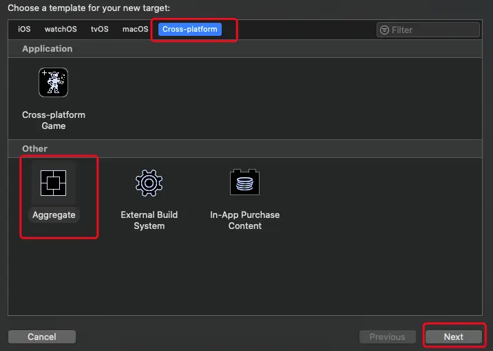 if [ "${ACTION}" = "build" ] then INSTALL_DIR=${SRCROOT}/Products/${PROJECT_NAME}.framework DEVICE_DIR=${BUILD_ROOT}/${CONFIGURATION}-iphoneos/${PROJECT_NAME}.framework SIMULATOR_DIR=${BUILD_ROOT}/${CONFIGURATION}-iphonesimulator/${PROJECT_NAME}.framework if [ -d "${INSTALL_DIR}" ] then rm -rf "${INSTALL_DIR}" fi mkdir -p "${INSTALL_DIR}" cp -R "${DEVICE_DIR}/" "${INSTALL_DIR}/" #ditto "${DEVICE_DIR}/Headers" "${INSTALL_DIR}/Headers" lipo -create "${DEVICE_DIR}/${PROJECT_NAME}" "${SIMULATOR_DIR}/${PROJECT_NAME}" -output "${INSTALL_DIR}/${PROJECT_NAME}" open "${DEVICE_DIR}" open "${SRCROOT}/Products" fi- Xcode -> File -> New -> Project,选择: