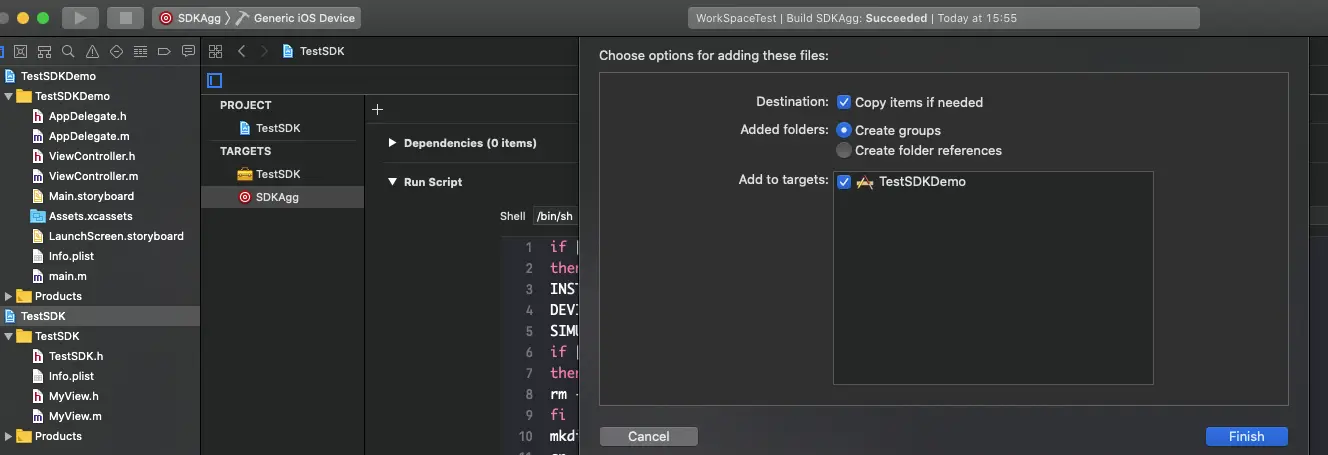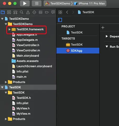 将刚才拷贝出的Framework拖入TestSDKDemo中: