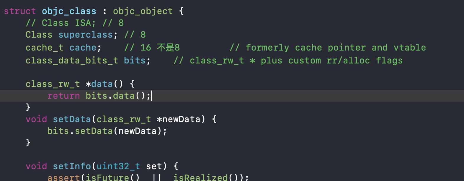 Class ISA:主要关联类Class superclass:父类cache_t cacheclass_data_bits_t bits