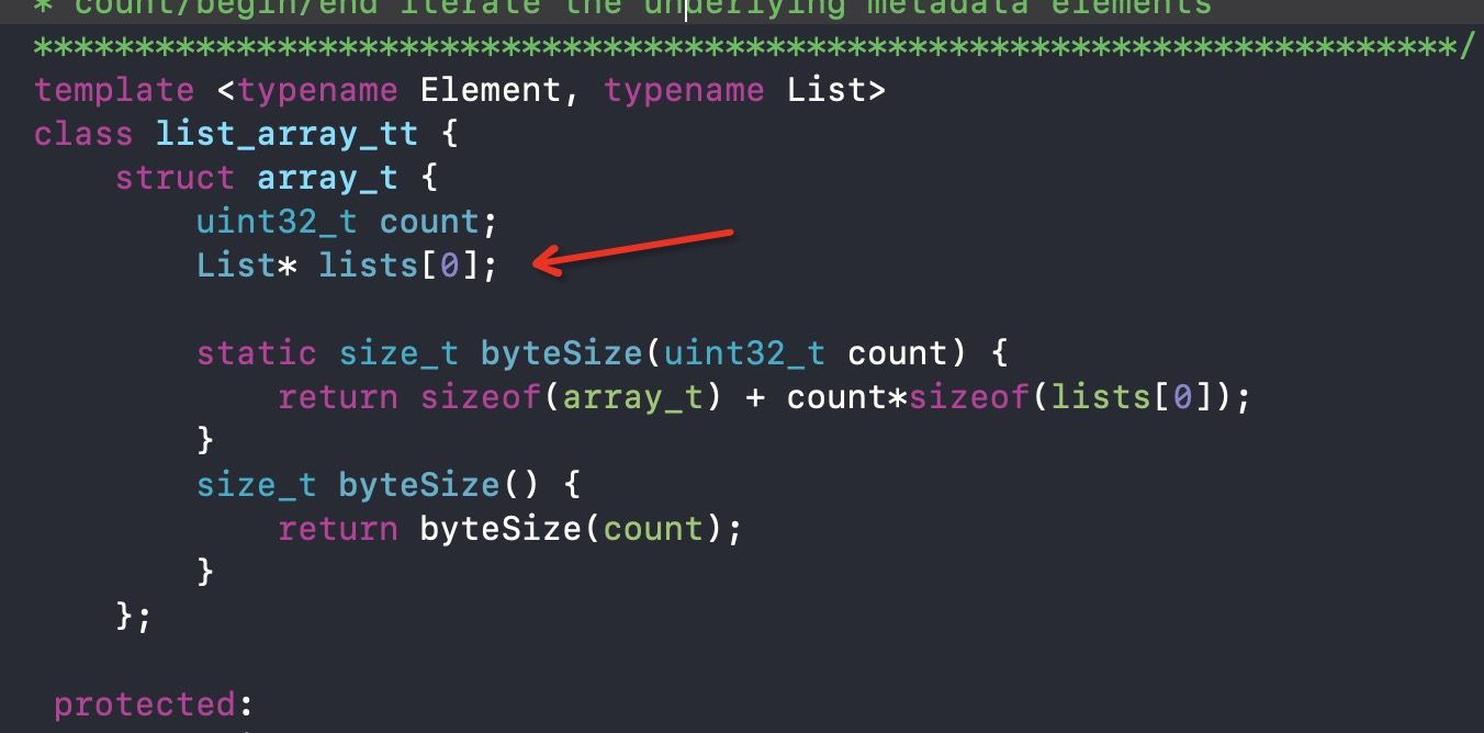 property_list_t,可得其继承自entsize_list_tt,打印其中的元素Element first;可以得到保存的类中保存的属性
