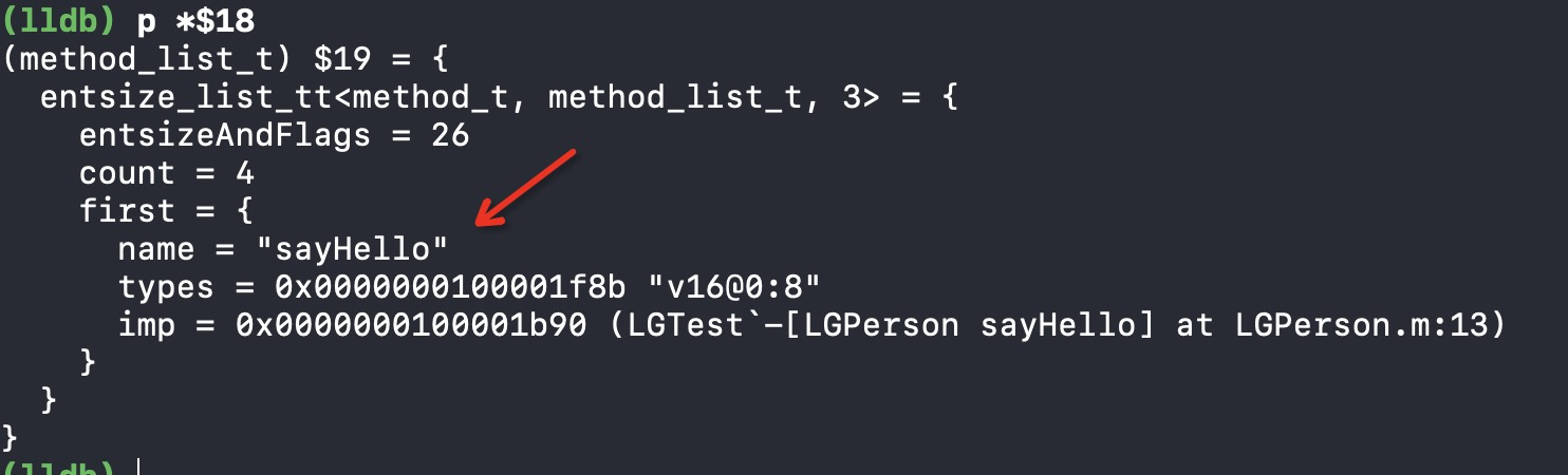 list,可以发现我们的实例方法sayHello,此时已经验证了方法的存储