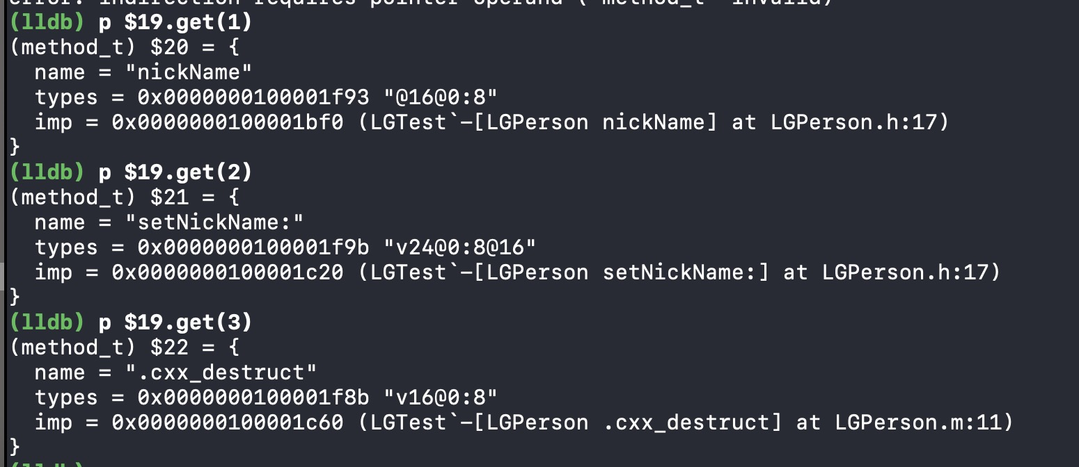 通过对class_rw_t研究,我们发现有一个methods元素,那么这个很有可能就是存放方法的列表,通过打印我们可得