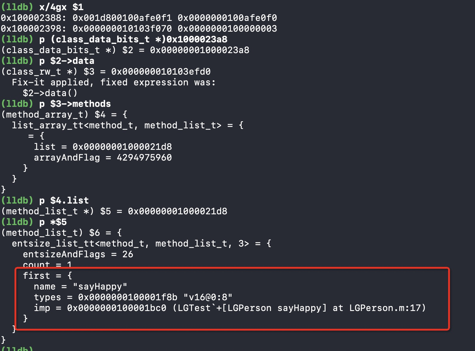 我们可以通过LLDB命令和指针偏移,一步步来探索