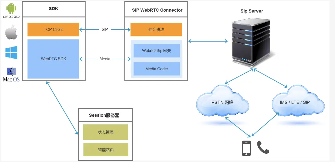 2、核心是开发一个SIP2WebRTC/WebRTC2SIP协议转换网关,维护一个状态机;