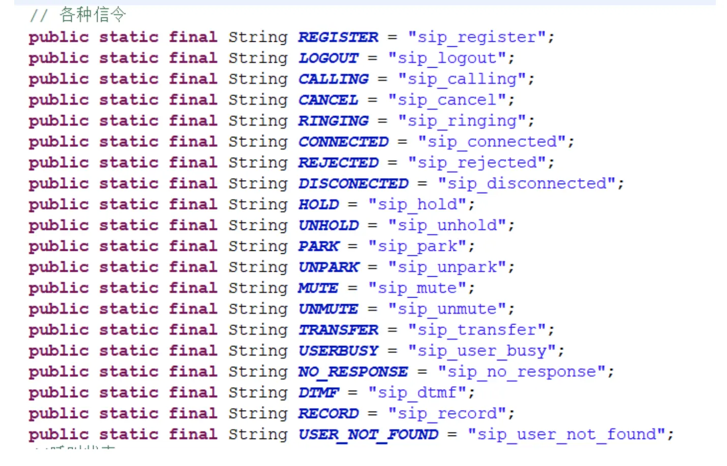 6、自定义常见的SIP呼叫信令,供各平台客户端保持一致。