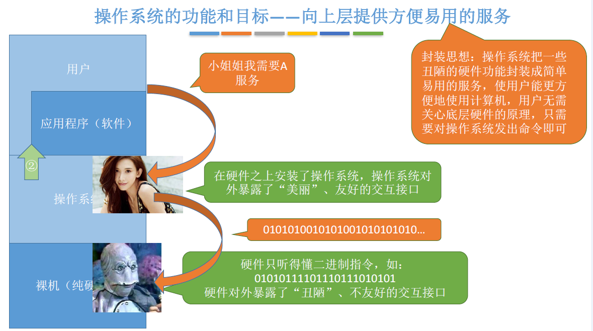 可以提供资源管理功能和方便用户的服务功能,将裸机改造成功能