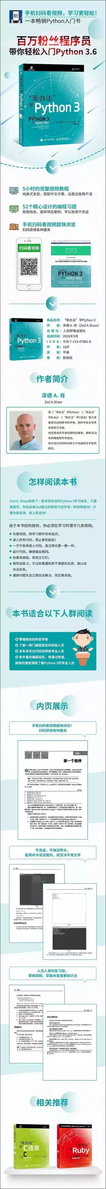 本书是一本Python入门书,适合对计算机了解不多,没有学过编程,但对编程感兴趣的读者学习使用。这本书以习题的方式引导读者一步一步学习编程,从简单的打印一直讲到完整项目的实现,让初学者从基础的编程技术入手,最终体验到软件开发的基本过程。本书是基于Python 3.6版本编写的。