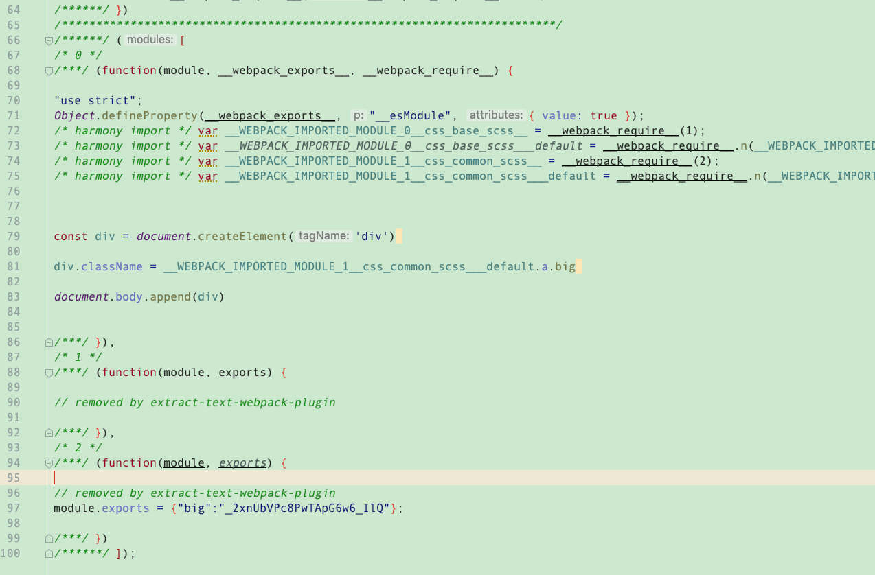 如果还要对 css 进行 tree shaking,则要借助 purifycss-webpack 和 glob-all,这里要注意和 css-module 是冲突的,要把 css-loader 里的 modules 设为 false。!