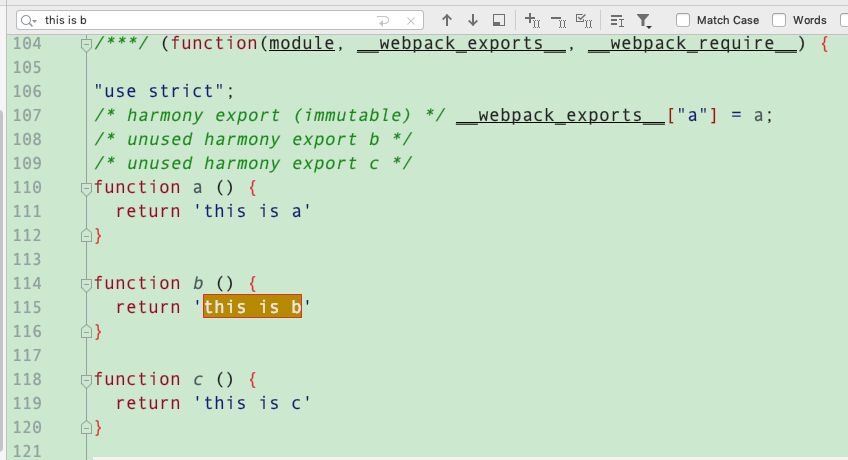 原来设置下的打包结果下,util 下的三个函数都会打包进去: