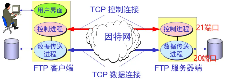 控制连接,发送给服务器端的控制进程。 - 控制进程收到传送请求后创建