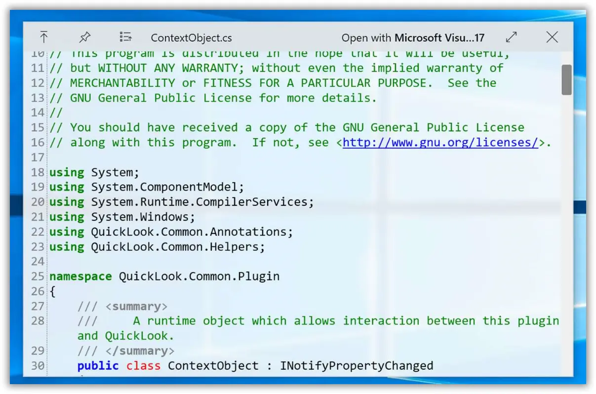 QuickLook 是在 Microsoft Store 里面下载的一个速览工具,有时候打开一个PDF、视频之类的需要等关联程序启动半天,有了它之后只要选中目标文件,按空格就可以快速预览了,速度非常快,支持图片、视频、音频、压缩包、PDF、文本文件、Markdown、HTML等格式;