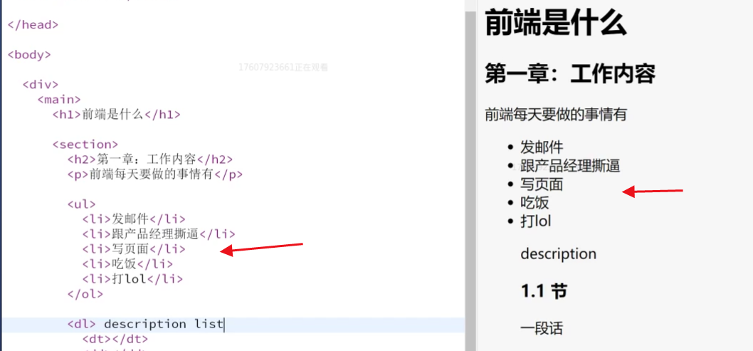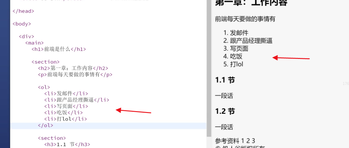 - ol+li 表示有顺序的列表(只能写在li里面,否则不显示)