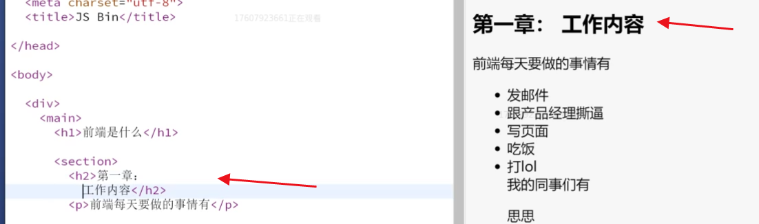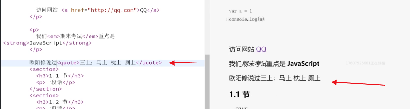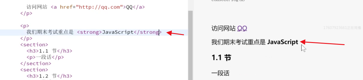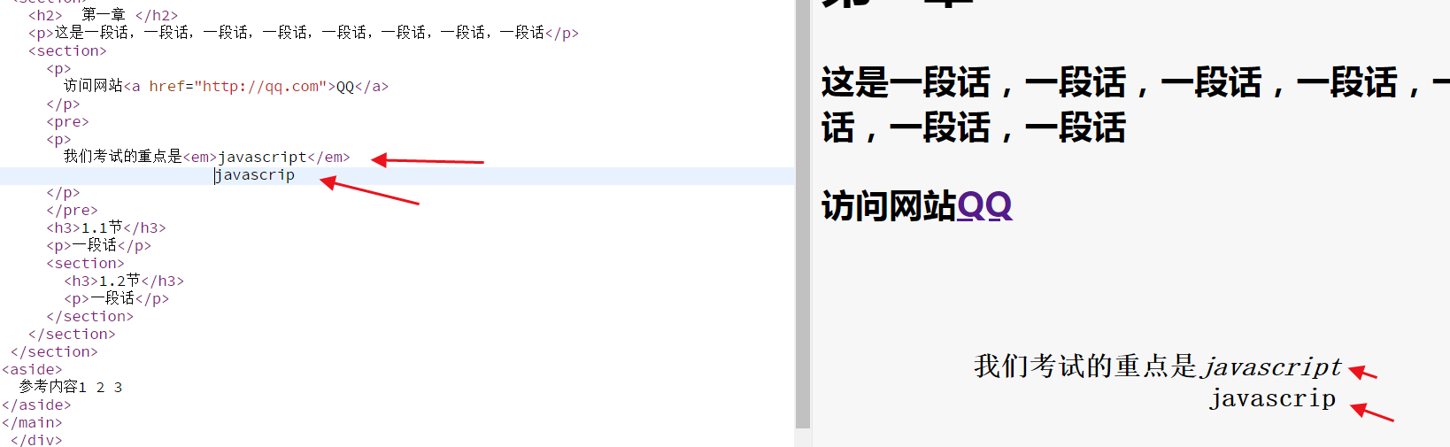 - 旁支内容:aside 用来提示说aside标签里面的内容是旁支内容
