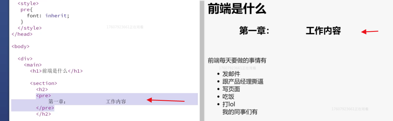 4.pre:在html中,连续多个空格(或者tab)会被缩成一个空格,回车会变成一个空格,用 pre标签包起来空格就可以保留。