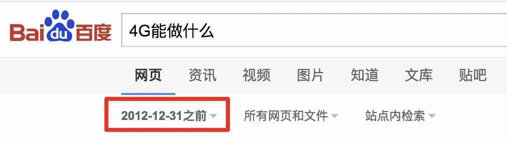 打开百度,搜索“4G能做什么”,把时间调整到12年之前