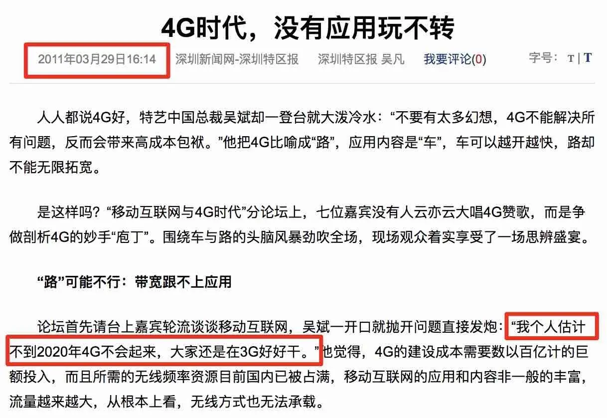 我们不妨看一看当年人们对4G的看法,我们会发现站在未来的高度看过去的事情是一件非常有意思的事情。