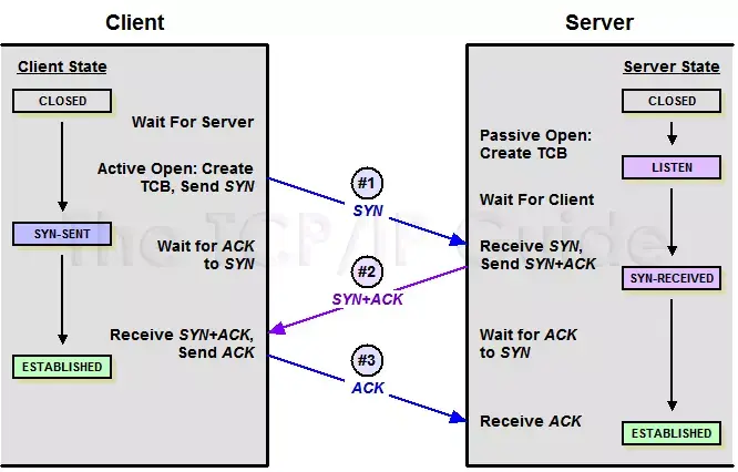 起初客户端和服务端是都出关闭的状态,在通信开始前,双方会建立TCB,客户端在建立之后进行准备发送阶段,服务端处于LISTEN状态。