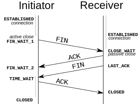 PS:在建立连接中,任意一端掉线,TCP 都会重发 SYN 包,一般会重试五次,在建立连接中可能会遇到 SYN Flood 攻击。遇到这种情况你可以选择调低重试次数或者干脆在不能处理的情况下拒绝请求。