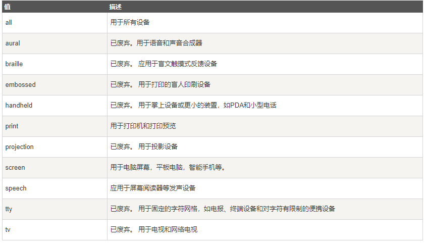 一种不使用media_type([only | not ]? <media_type> [and <expression>]*)(<expression> [and <expression>]*) - media_type:媒体类型