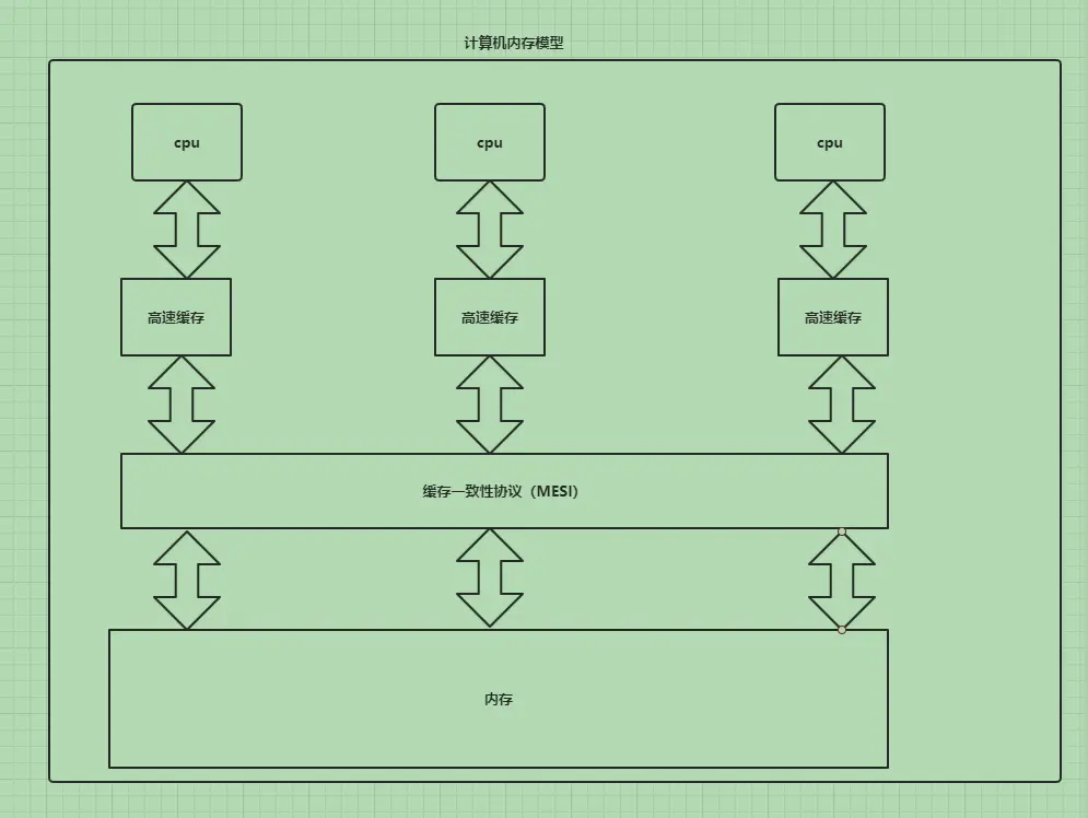 - MESI协议保证数据的正确性,具体怎么保证,不过多介绍,明白有了这个协议,数据的正确性在多个缓存中能得到保证就好。物理计算机有乱序执行优化,Java虚拟机对应的有指令重排序