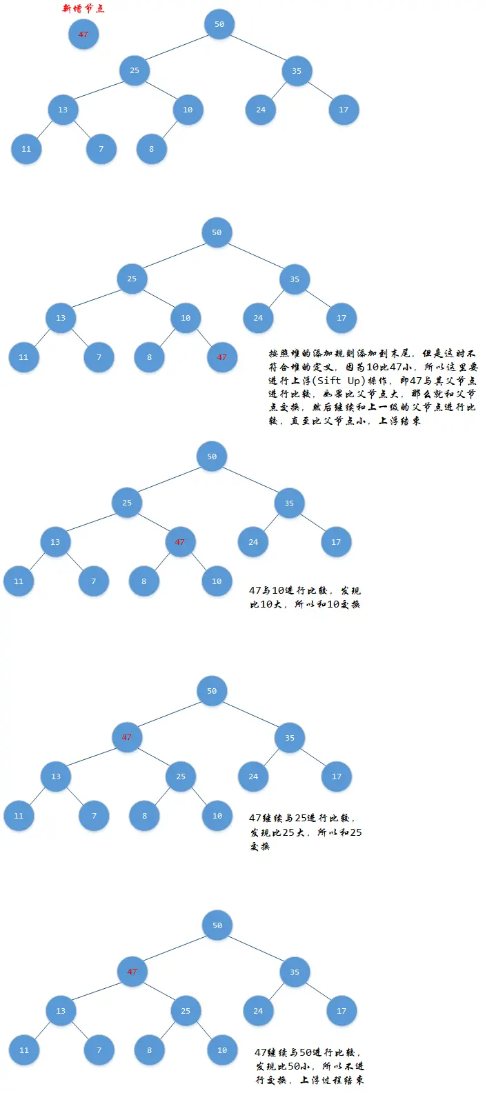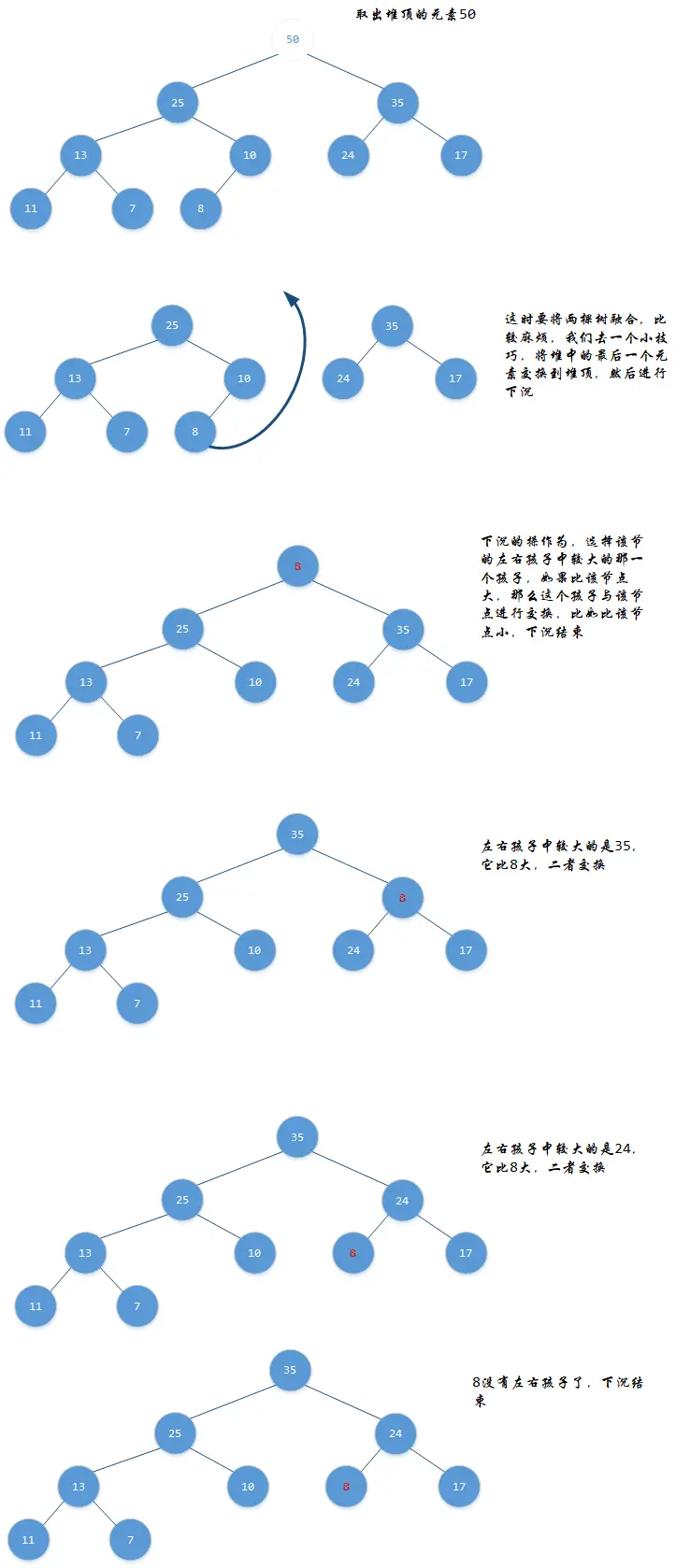 - 堆中某个节点的值总是不大于其父亲节点的值(最大堆,相应也可以定义最小堆)