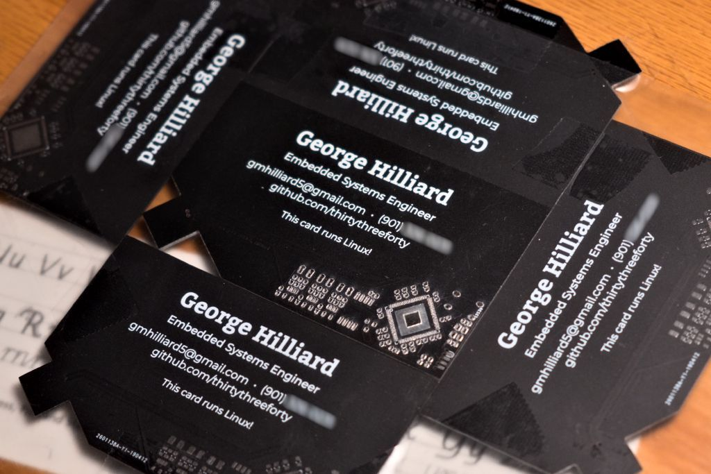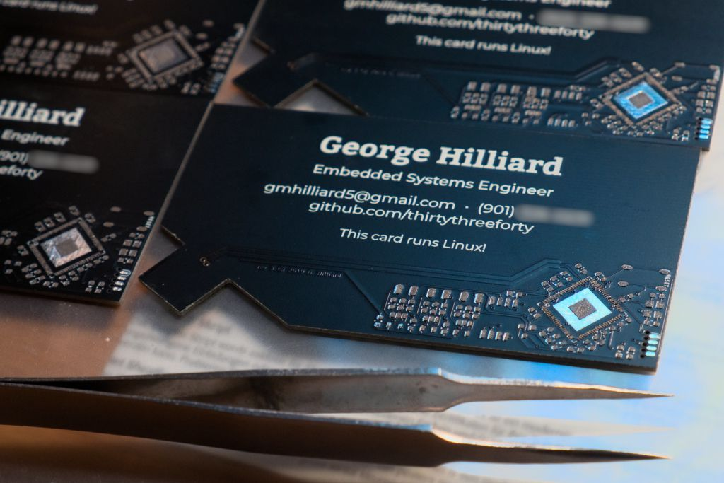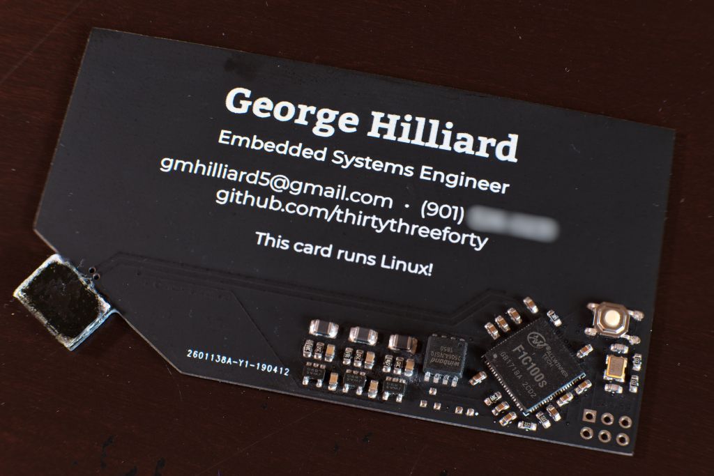 作为一名嵌入式系统工程师,George Hilliard 一直在追寻完美的设计,其中之一就是最简洁的 Linux 系统计算机。他一直在海量处理器型号中寻找最优解,最终发现了新的大陆。他对自己说:「这些处理器便宜得就像白送。 」很快产生了用它们来制作可以运行 Linux 的名片的想法。