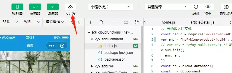 以文章评论功能为例,我们来看看代码以及小程序云开发的整个流程。