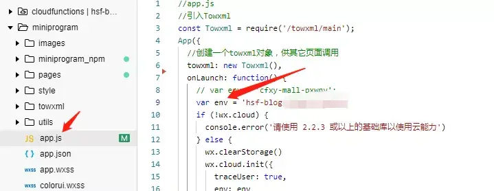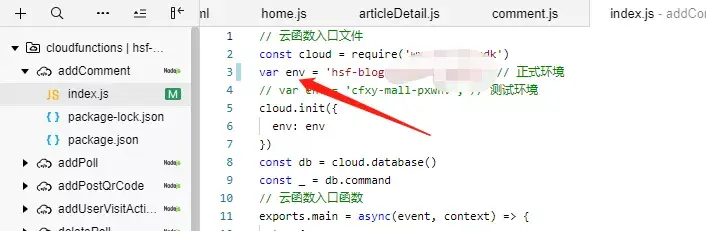(2)修改所有云函数中的环境ID为自己的环境ID。