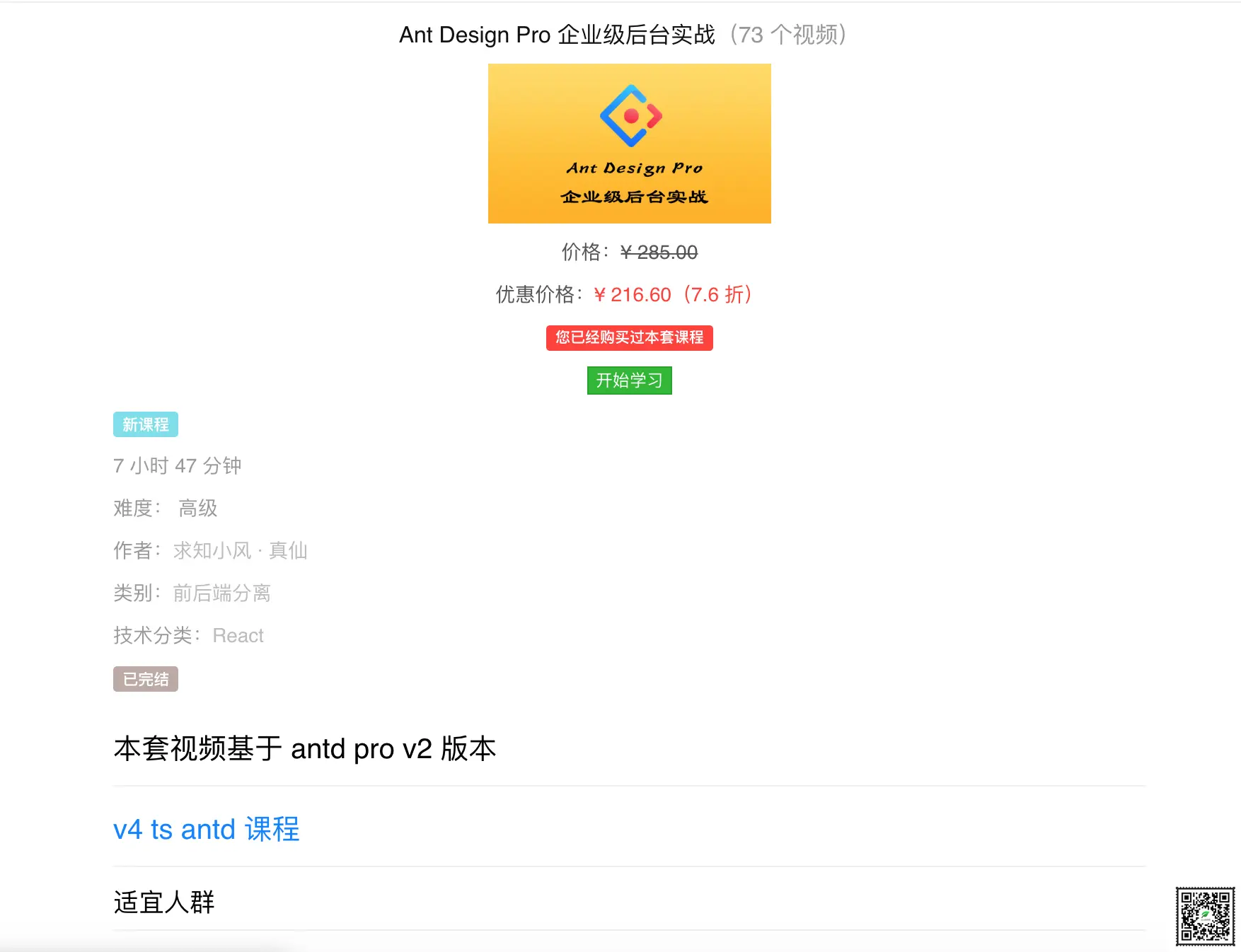 ant design pro v4 相关的内容,那么现在这套课程呢