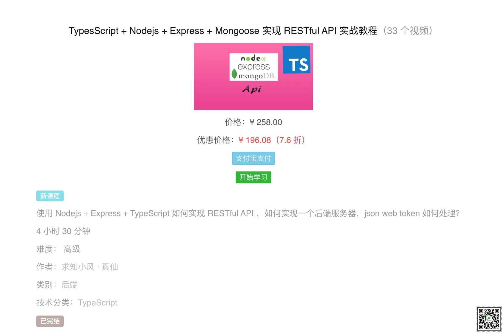 www.qiuzhi99.com/playlists/t… TypesScript + Nodejs + Express + Mongoose 实现 RESTful API 实战教程