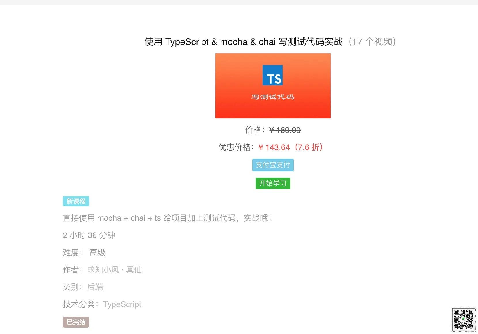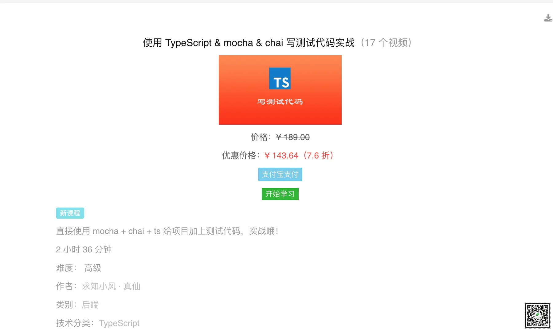 www.qiuzhi99.com/playlists/t… 使用 TypeScript & mocha & chai 写测试代码实战