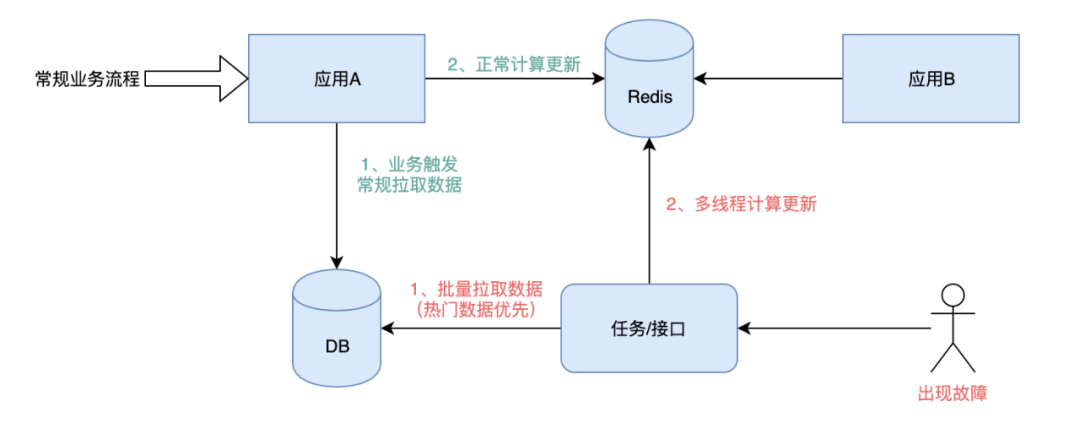首先,建议快速恢复。通常这种方案更适用于有基础数据集的,通过定时任务或者手动触发接口,在短时间内完成对数据的清洗,清洗时考虑优先恢复热点数据。这里的短时间,我们期望是能影响 ATP 的场景在 2min 内完成,对用户体验有影响的允许在 10min 内完成。
