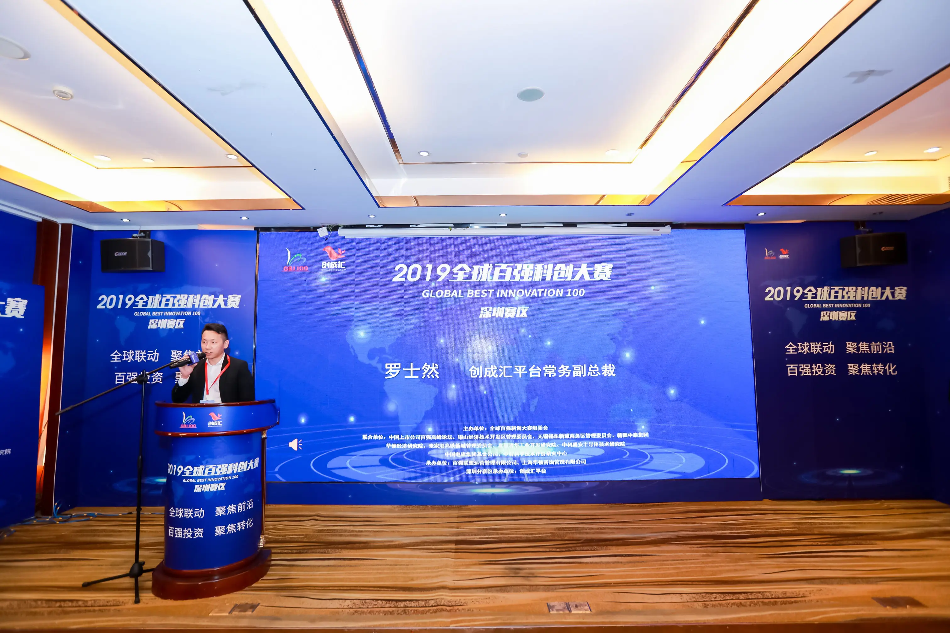 大赛由全球百强科创大赛组委会主办,中国上市公司百强高峰论坛、锡山经济技术开发区管理委员会、无锡锡东新城商务区管理委员会、新疆中泰集团、华顿经济研究院、张家港高铁新城管理委员会、北京清华工业开发研究院、中科潞安半导体技术研究院、中国电建集团基金公司、中智科学技术评价研究中心联合主办,百强联盟运营管理有限公司、上海华顿咨询管理有限公司承办,创成汇为大赛深圳赛区组织单位。