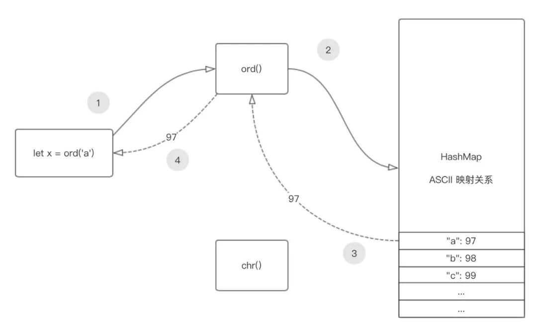 init() 方法返回的是存储 ASCII 标准码的 HashMap,ord() 方法和 chr() 方法负责从 HashMap 中取出对应的 Key 或者 Value。