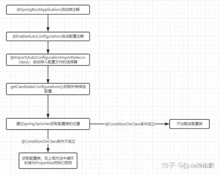 SpringBoot所有自动配置类都是在启动的时候进行扫描并加载,通过spring.factories可以找到自动配置类的路径,但是不是所有存在于spring,factories中的配置都进行加载,而是通过@ConditionalOnClass注解进行判断条件是否成立(只要导入相应的stater,条件就能成立),如果条件成立则加载配置类,否则不加载该配置类。