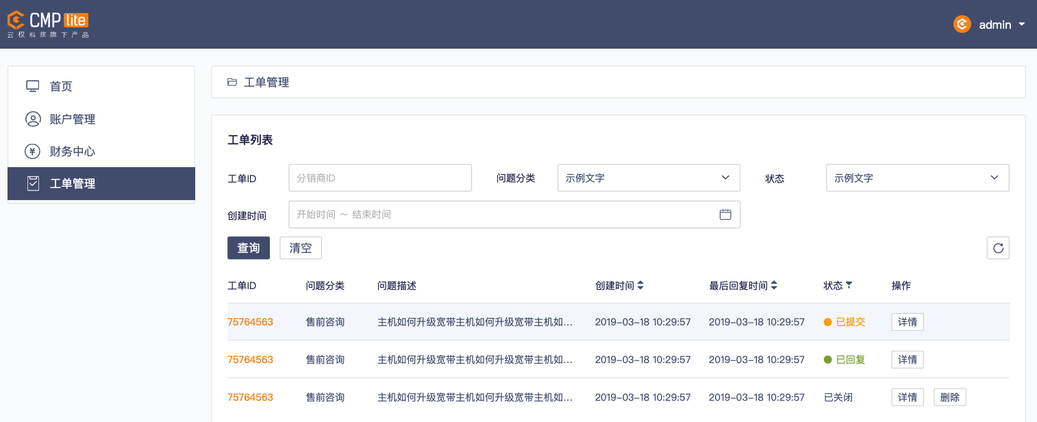 工单是用户和MSP沟通的桥梁之一,通过工单系统用户可及时提出疑问,MSP快速做出响应,管理问题进度并提高用户体验。