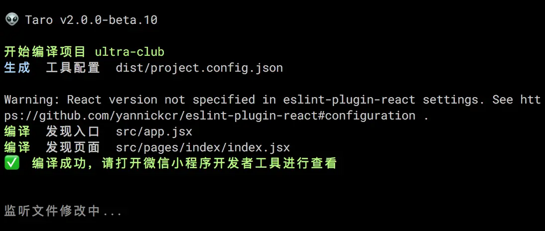 Taro 提供的模板代码直接可以运行。打开终端,运行以下命令: