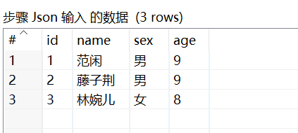 预览数据的数据内容。 1.2、JSON输入:读取文件中的Json数据,放入数据流,该数据流支持写入数据库表和文件
