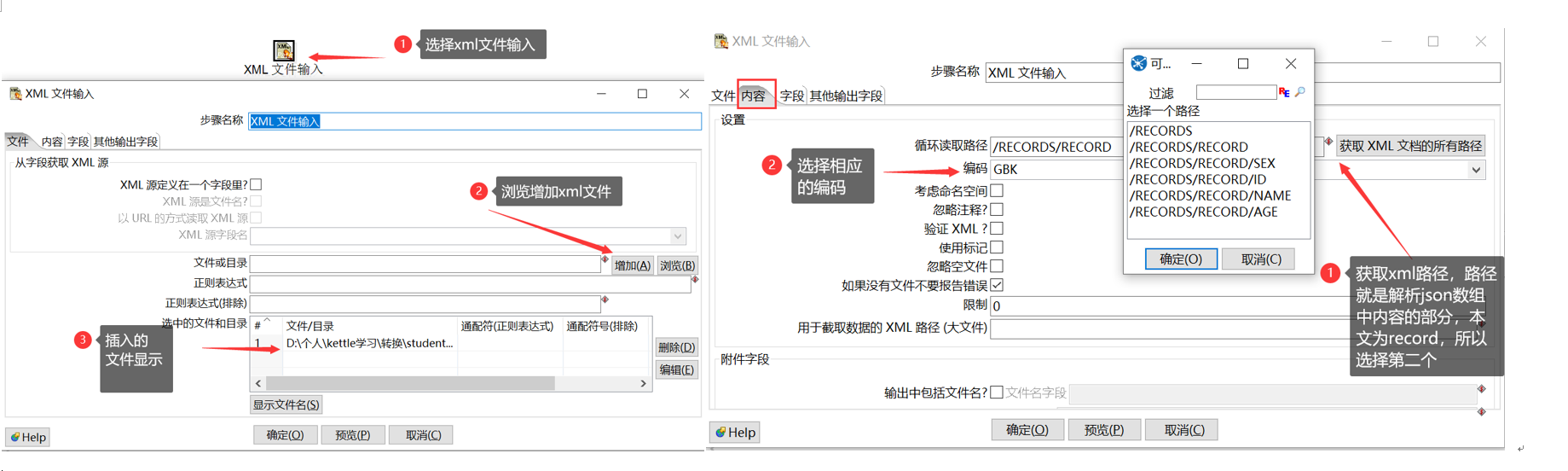 2.2、XML文件输出:将数据流中的文件输出到XML中