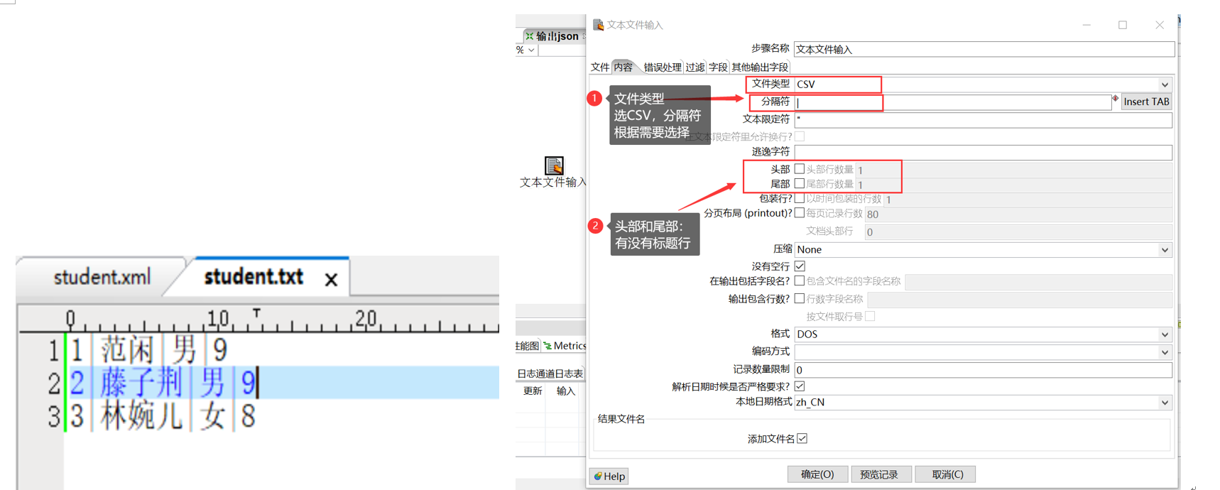 1.4、文本文件输入:读取文本文件中的据,写入数据流,该数据流支持写入数据库表和文件