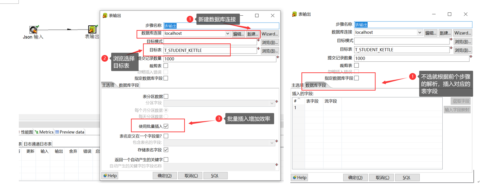 2.4、表输出:将数据流中的文件输出到数据库的具体表中