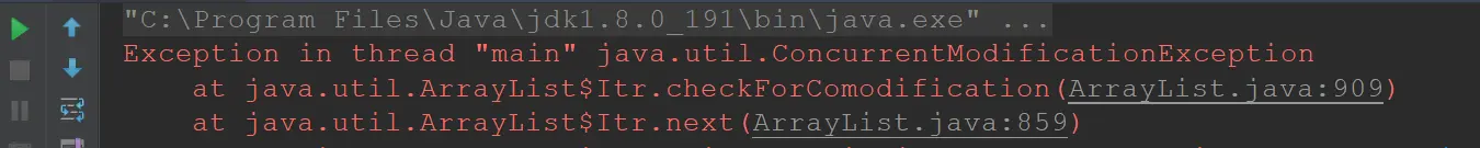 当我们使用第一种foreach方式进行删除时,代码执行到第二个元素就直接抛出异常,异常如下: