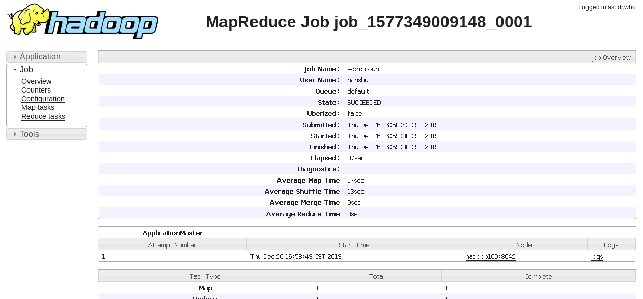 19/12/26 16:59:40 INFO mapreduce.Job: Job job_1577349009148_0001 completed successfully