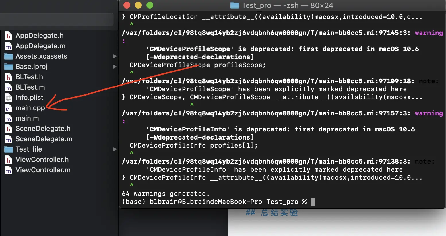 2、通过终端进入文件夹,编译main.m 为main.cpp