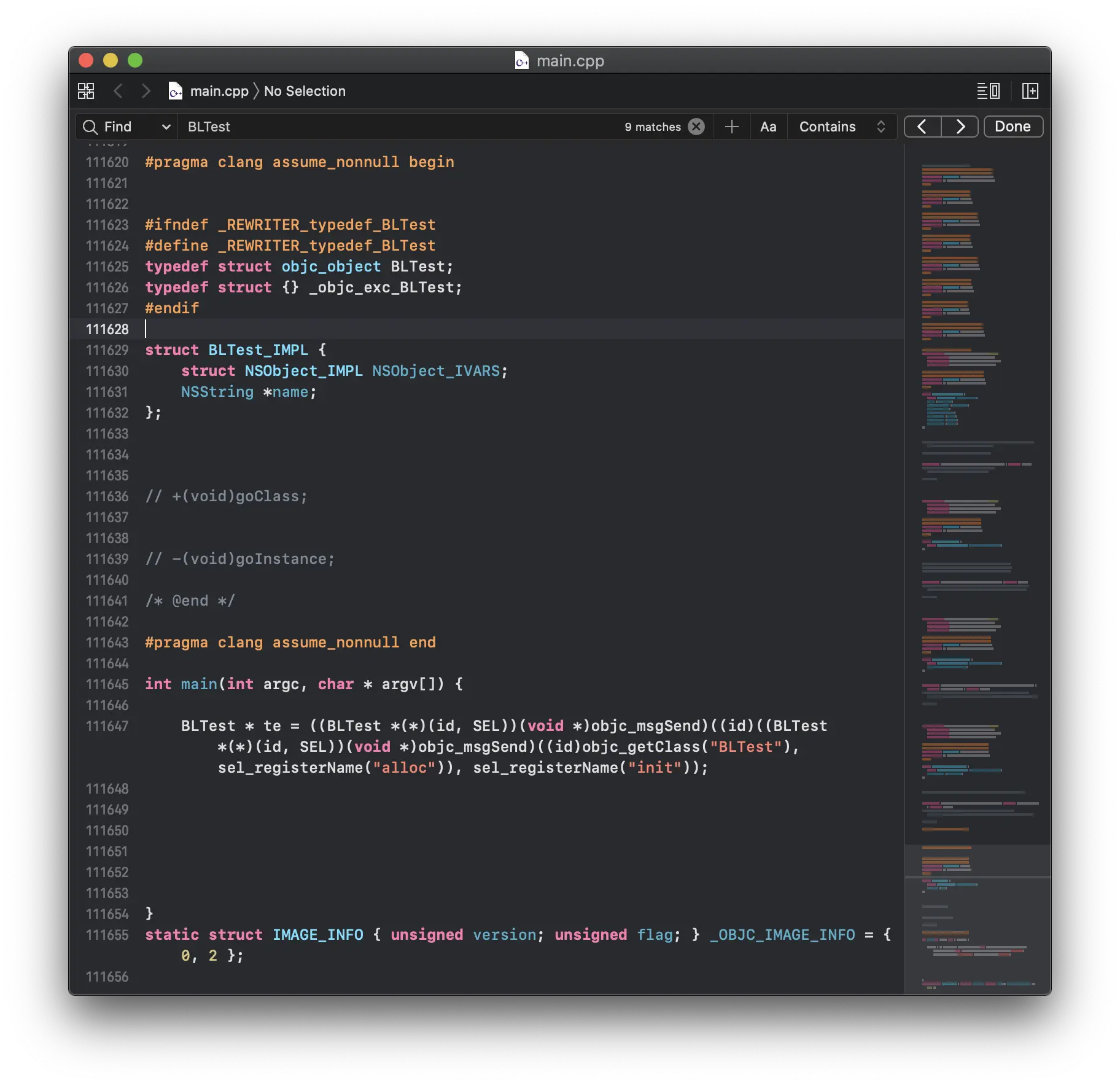 xcrun -sdk iphoneos clang -arch arm64 -rewrite-objc main.m -o testMain.c++