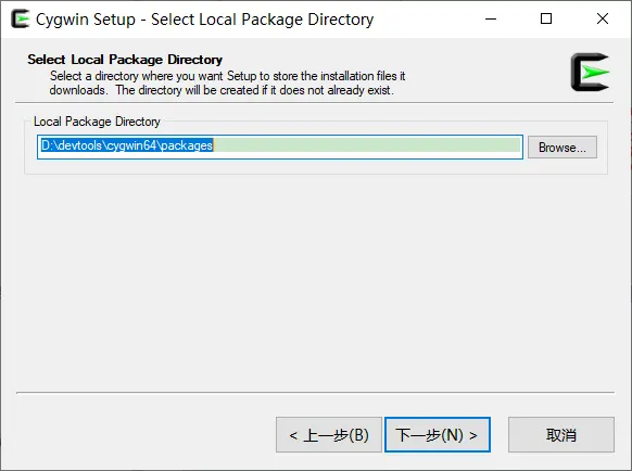 选择安装路径,这个是之cygwin命令窗口的路径。这个路径就是cygwin模拟linux环境的根路径/,再这个路径之下会有home/<用户名>的文件夹,相当于windows环境中D:\devtools\cygwin64目录 就是cygwin模拟环境的/目录