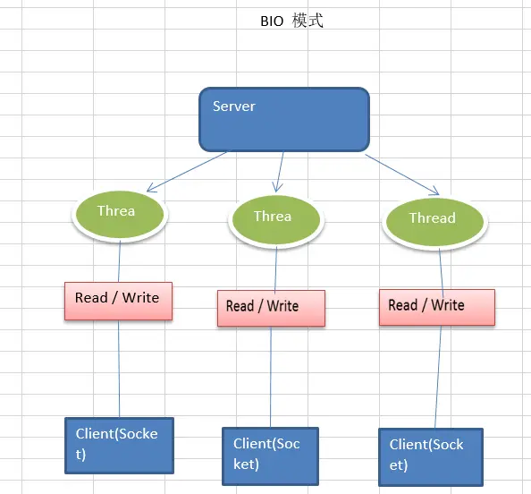 服务实现模式为一个连接一个线程,即客户端有连接请求时,服务端就需要启动一个线程进行处理,如果这个连接不做任务事情就会一直阻塞着,造成不必要的线程开销, 虽然可以用线程池优化技术,但是还是避免不了一个客户端连接请求创建一个线程资源的局面。