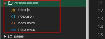 注意:这里的页面1234是以组件Component的形式而不是Page 2、新建自定义tabBar的默认文件夹:
